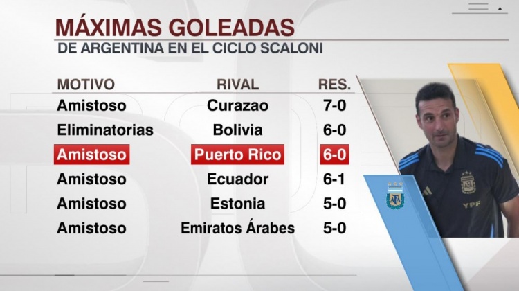 10月15日讯 阿根廷队友情 赛6-0大胜波多黎各,根据统计,欧洲杯直播吧6-0是斯卡洛尼执教阿根廷队的第二大比分获胜 。
