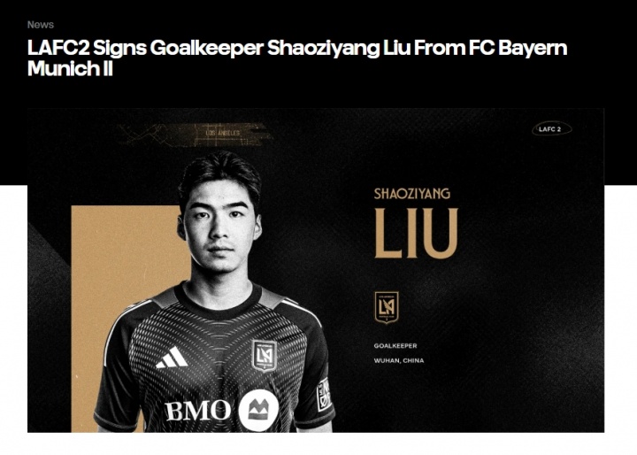 据美职联球队洛杉矶FC官方消息,俱乐部二队签下拜仁慕尼黑二队守门员刘邵子洋。