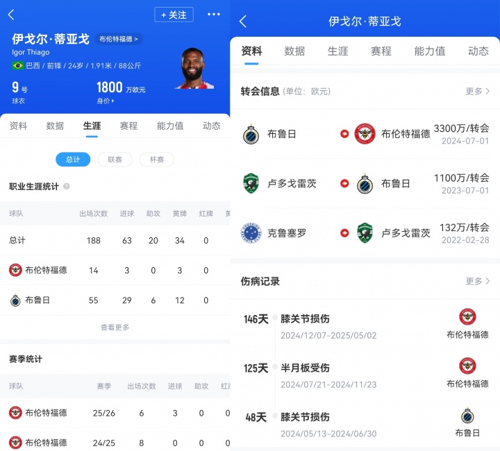 伊戈尔去年3300万欧元从布鲁日加盟布伦特福德,但两度遭遇重伤,免费欧洲杯直播去年只出场8次没有得分 。